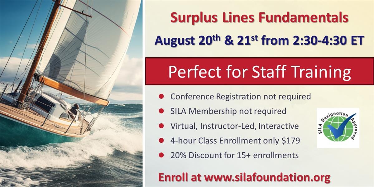 ๐ฎ๐ง๐๐๐ฆ๐๐ง๐ญ๐๐ฅ๐ฌ is a 4-hour training class covering surplus lines fundamentals that includes surplus lines terms and definitions, players in the surplus lines market, the role of the Surplus Lines Associations, and Surplus Lines licensing and tax reporting requirements.